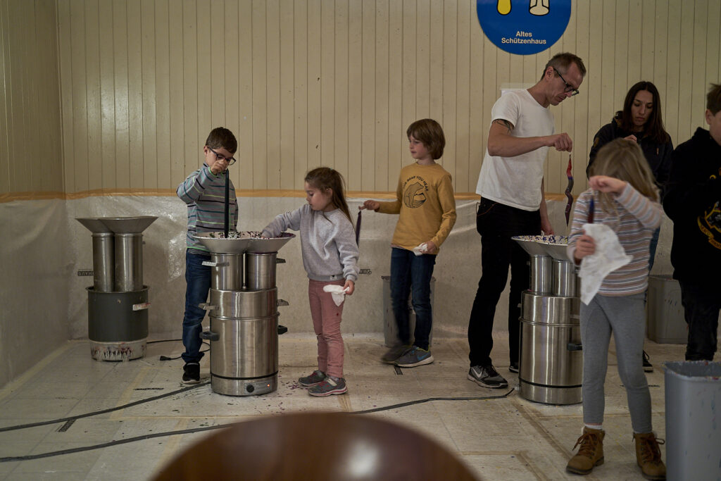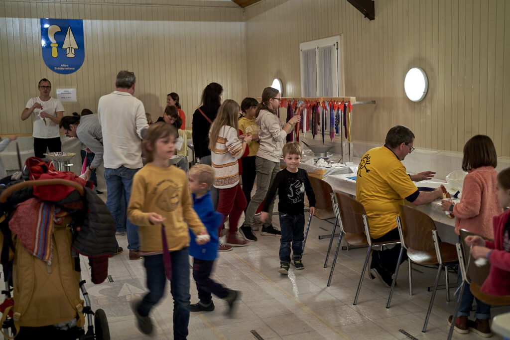Kurz nach Fünf, Sonntag, 28.11.2021, hatte das Warten bei dicken, weissen Flocken endlich ein Ende: Die Samichläuse und Schmutzlis mit Eseli trafen beim Schulhaus Rebberg ein und gemeinsam mit Kindern und Eltern ging es weiter zur Schulanlage Goldschmied, Sunnerai Halde und Lanzrain. Hier wurden Versli aufgesagt und die Kleinen durften eine Runde Eseli reiten. Marroni, Hotdogs und die heissen Getränke vom EVO erfreuten sich grosser Beliebtheit.
