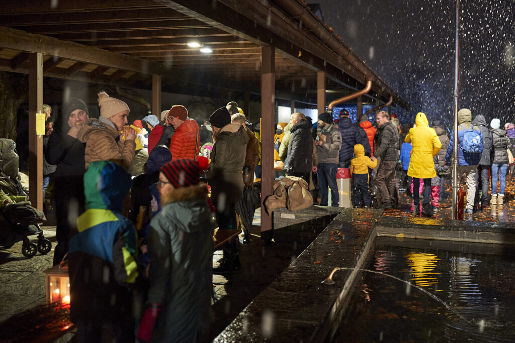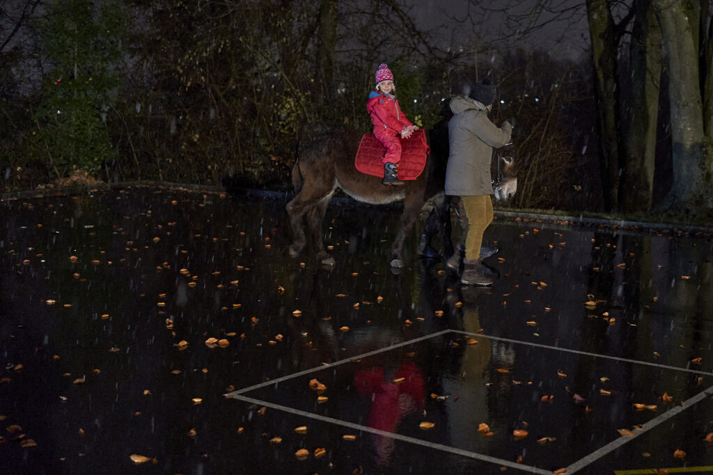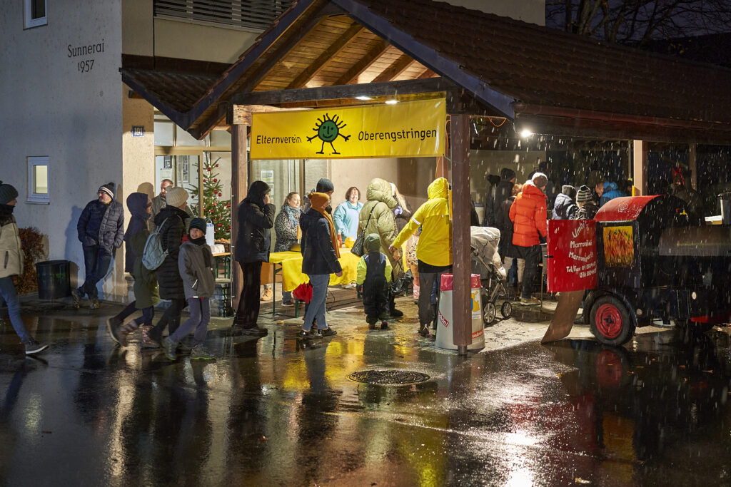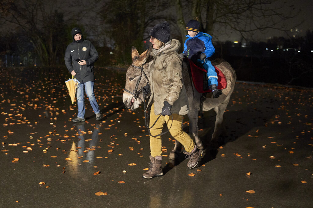 Kurz nach Fünf, Sonntag, 28.11.2021, hatte das Warten bei dicken, weissen Flocken endlich ein Ende: Die Samichläuse und Schmutzlis mit Eseli trafen beim Schulhaus Rebberg ein und gemeinsam mit Kindern und Eltern ging es weiter zur Schulanlage Goldschmied, Sunnerai Halde und Lanzrain. Hier wurden Versli aufgesagt und die Kleinen durften eine Runde Eseli reiten. Marroni, Hotdogs und die heissen Getränke vom EVO erfreuten sich grosser Beliebtheit.